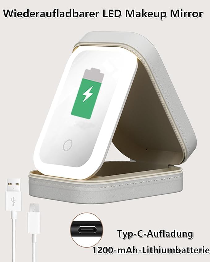 ✅ Perfect Lighting Anywhere – Built-in LED mirror with 3 light modes for flawless makeup
